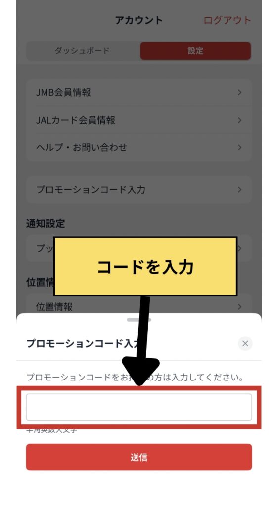 次に出てきた画面に先ほどコピーしたクーポンコードを貼り付けし、送信しましょう!